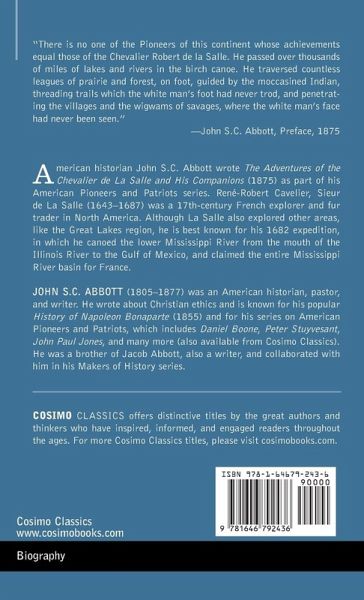 "There is no one of the Pioneers of this continent whose achievements equal those of the Chevalier Robert de la Salle. He passed over thousands of miles of lakes and rivers in the birch canoe. He traversed countless leagues of prairie and forest, on foot, guided by the moccasined Indian, threading trails which the white man's foot had never trod, and penetrating the villages and the wigwams of savages, where the white man's face had never been seen." -John S.C. Abbott, Preface, 1875 American historian John S.C. Abbott wrote The Adventures of the Chevalier de La Salle and His Companions (1875) as part of his American Pioneers and Patriots series. René-Robert Cavelier, Sieur de La Salle (1643-1687) was a 17th-century French explorer and fur trader in North America. He is best known for an early 1682 expedition in which he canoed the lower Mississippi River from the mouth of the Illinois River to the Gulf of Mexico and claimed the entire Mississippi River basin for France.