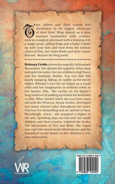 Two sisters and their cousin find themselves in the biggest adventure of their lives! What started as a slow summer bombarded with tourists, ends in a magical adventure with a looming evil, a magic pond, talking frogs and a baby! Cuddle up with your kids and read them the curious antics of Tiny, her sister Birdo and their cousin Blueser. Beware the frog pond!