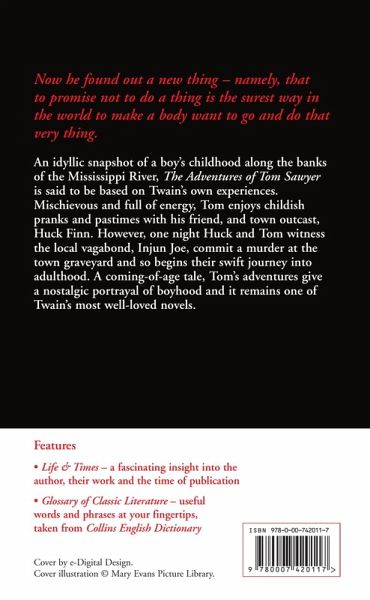 An idyllic snapshot of a boy's childhood along the banks of the Mississippi River, Twain's The Adventures of Tom Sawyer is the author's work that comes closest to his boyhood experiences of growing up in Hannibal in the 1840s.
