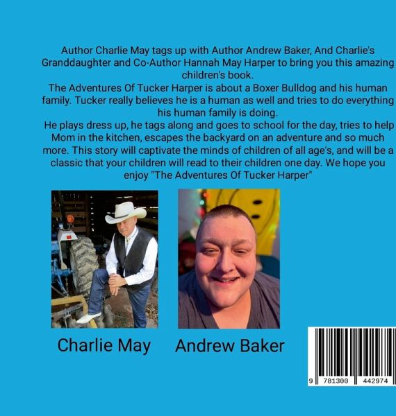 "The Adventures of Tucker Harper" is a story about a Boxer Bulldog who lives with ten year old Hannah, her older brother, mom and dad. Tucker believes with all his heart that he is a human and can do what his humans do. He tries to go to school with Hannah, he loves to play dress up, help bake in the kitchen, loves movies and popcorn. Tucker even loves to escape once in a while to go explore. He is one special dog and is very loved by everyone he crosses paths with. We hope you enjoy all the adventures Tucker will take you on in this book that is sure to bring joy to kids for generations.