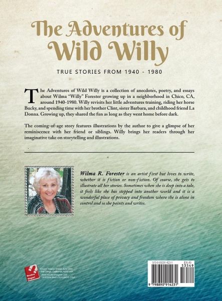 The Adventures of Wild Willy is a collection of anecdotes, poetry, and essays about Wilma "Willy" Forester growing up in a neighborhood in Chico, CA, around 1940-1980. Willy revisits her little adventures training, riding her horse Bucky, and spending time with her brother Clint, sister Barbara, and childhood friend La Donna. Growing up, they shared the fun as long as they went home before dark. The coming-of-age story features illustrations by the author to give a glimpse of her reminiscence with her friend or siblings. Willy brings her readers through her imaginative take on storytelling and illustrations.