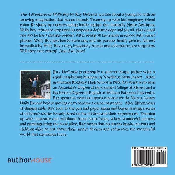The Adventures of Willy Boy by Ray DeGraw is a tale about a young lad with an amazing imagination that has no bounds. Teaming up with his imaginary friend robot R-Matey in a never-ending battle against the dastardly Pirate Arrtimus, Willy boy refuses to stop until his nemesis is defeated once and for all...that is until one day he has a strange request. After seeing all his friends in school with "smart phones" Willy Boy just has to have one, and his parents finally give in. Almost immediately, Willy Boy's toys, imaginary friends and adventures are forgotten. Will they ever return? And if so, how?
