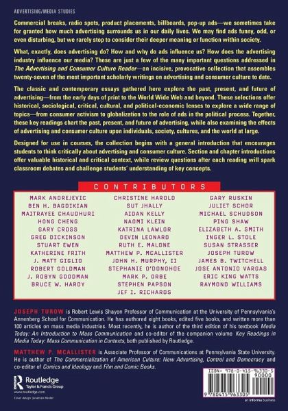 Joseph Turow is Robert Lewis Shayon Professor of Communication at the University of Pennsylvania's Annenberg School for Communication. He has authored eight books, edited five books, and written more than 100 articles on mass media industries. Most recently, he is author of the third edition of his textbook Media Today: An Introduction to Mass Communication and co-editor of the companion volume Key Readings in Media Today: Mass Communication in Contexts, both published by Routledge. Matthew P. McAllister is Associate Professor of Communications at Pennsylvania State University. He is author of The Commercialization of American Culture: New Advertising, Control and Democracy and co-editor of Comics and Ideology and Film and Comic Books.