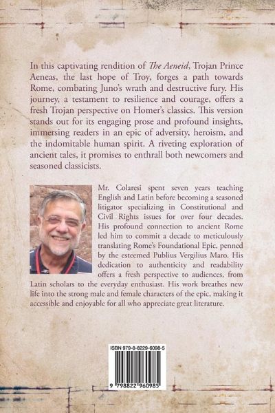 Epic Tale of Aeneas: Surviving Troy, Guided by Gods, Founding Rome. A Fresh Retelling of Homer's Classics, Rich with Heroism, Adversity, and Resilience. In this masterful retelling of The Aeneid, we journey with Trojan Prince Aeneas, the survivor of the catastrophic ruin of Troy. Despite the calamity, Aeneas ignites hope within the hearts of the surviving Trojans. Encouraged by Jupiter and the Fates, they set sail westward towards the promise of founding the grand Eternal City of Rome. The path is fraught with trials, as they face relentless opposition from Juno, the Queen of the Gods. She wields her divine power to unleash war and natural disasters, aiming to annihilate Aeneas and his companions at every turn. Yet, in this narrative, Aeneas is not just a prince or a warrior; he is a symbol of unwavering courage amidst adversity. His journey teaches him to cast aside fear, trust himself, and rely on divine intervention and the intrinsic decency of humanity. This retelling also offers the unique perspective of the Trojans on the events of Homer's Iliad and Odyssey. Unlike many translations from Latin, the prose in this version stands out for its readability and captivating storytelling. The narrative highlights not only the riveting storyline but also the author's unique and insightful perspective on the unjust fall of Troy. This book is a compelling exploration of heroism, adversity, and resilience. It brings to life a rich tapestry of characters, each with their own strengths and vulnerabilities. The narrative will captivate those seeking great literature, whether they are familiar with the original classics or discovering this timeless tale for the first time. The reader will find themselves immersed in an epic tale that transcends time, as they journey with Aeneas to fulfill his destiny and establish what would become one of the greatest empires in history.