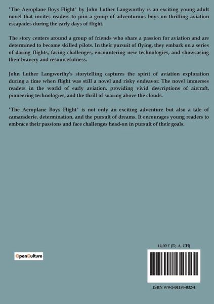 "The Aeroplane Boys Flight" by John Luther Langworthy is an exciting young adult novel that invites readers to join a group of adventurous boys on thrilling aviation escapades during the early days of flight. The story centers around a group of friends who share a passion for aviation and are determined to become skilled pilots. In their pursuit of flying, they embark on a series of daring flights, facing challenges, encountering new technologies, and showcasing their bravery and resourcefulness. John Luther Langworthy's storytelling captures the spirit of aviation exploration during a time when flight was still a novel and risky endeavor. The novel immerses readers in the world of early aviation, providing vivid descriptions of aircraft, pioneering technologies, and the thrill of soaring above the clouds. "The Aeroplane Boys Flight" is not only an exciting adventure but also a tale of camaraderie, determination, and the pursuit of dreams. It encourages young readers to embrace their passions and face challenges head-on in pursuit of their goals.