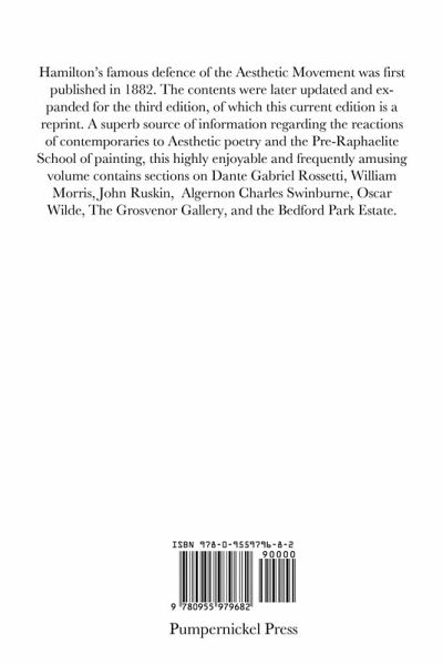 Hamilton's famous defence of the Aesthetic Movement was first published in 1882. The contents were later updated and expanded for the third edition, of which this current edition is a reprint. A superb source of information regarding the reactions of contemporaries to Aesthetic poetry and the Pre-Raphaelite School of painting, this highly enjoyable and frequently amusing volume contains sections on Dante Gabriel Rossetti, William Morris, John Ruskin, Algernon Charles Swinburne, Oscar Wilde, The Grosvenor Gallery, and the Bedford Park Estate. This edition has been newly typeset and formatted to ensure high-quality content and perfect readability; it is not a poor facsimile copy and was not produced using OCR software.
