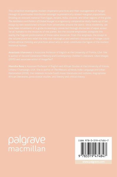 This collection investigates modern imperialist practices and their management of hunger through its punctuated distribution amongst asymmetrically related marginal populations. Drawing on relevant material from Egypt, Ireland, India, Ukraine, and other regions of the globe, The Aesthetics and Politics of Global Hunger is a rigorously comparative study made up of ten essays by well-established scholars from universities around the world. Since modernity, we have been inhabitants of a globe increasingly connected through discourses of equal access for all humans to the resources of the planet, but the volume emphasizes alongside this reality the flagrant politicization of those same resources. From this emphasis, the essays in the volume place into relief the idea that ideological and aesthetic discourses of hunger could inform ethical thinking and practices about who or what constitutes the figure of the modern historical human.