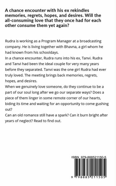 A chance encounter with his ex rekindles memories, regrets, hopes, and desires. Will the all-consuming love that they once had for each other consume them yet again? Rudra is working as a Program Manager at a broadcasting company. He is living together with Bhavna, a girl whom he had known from his schooldays. In a chance encounter, Rudra runs into his ex, Tanvi. Rudra and Tanvi had been the ideal couple for very many years before they separated. Tanvi was the one girl Rudra had ever truly loved. The meeting brings back memories, regrets, hopes, and desires. When we genuinely love someone, do they continue to be a part of our soul long after we go our separate ways? Does a piece of them linger in some remote corner of our hearts, biding its time and waiting for an opportunity to come gushing out? Can an old romance still have a spark? Can it burn bright after years of neglect? Read to find out.