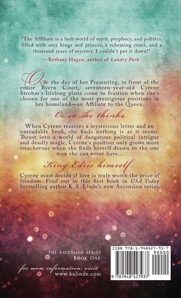 On the day of her Presenting, in front of the entire Byern Court, seventeen-year-old Cyrene Strohm's lifelong plans come to fruition when she's chosen for one of the most prestigious positions in her homeland--an Affiliate to the Queen. Or so she thinks. When Cyrene receives a mysterious letter and an unreadable book, she finds nothing is as it seems. Thrust into a world of dangerous political intrigue and deadly magic, Cyrene's position only grows more treacherous when she finds herself drawn to the one man she can never have... King Edric himself. Cyrene must decide if love is truly worth the price of freedom. Find out in this first book in USA Todaybestselling author K.A. Linde's new Ascension series. Great for fans of Game of Thrones, Tudors, and Sarah J. Maas's Throne of Glass series.
