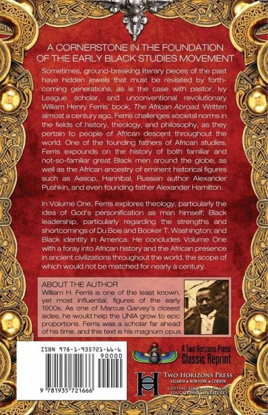 Sometimes groundbreaking literary pieces of the past have hidden jewels that must be revisited by forthcoming generations, as is the case with pastor, Ivy League scholar, and unconventional revolutionary William Henry Ferris' book, The African Abroad. Written almost a century ago, Ferris challenges societal norms in the fields of history, theology, philosophy as it pertains to Black people and those of African descent. Considered as one of the founding fathers of African studies, Ferris expounds on the history of familiar and not so familiar great Black men around the globe as well as the African ancestry of great historical figures such as Aesop, Hannibal Barca, Russian author Alexander Pushkin, and even founding father Alexander Hamilton. In Volume One, Ferris explores theology, particularly the idea of God's personification as man himself; Black leadership, particularly regarding the strengths and shortcomings of W.E.B. Du Bois and Booker T. Washington; and Black identity in America. He concludes Volume One with a foray into African history and the African presence in ancient civilizations throughout the world.