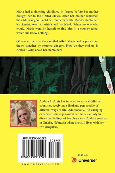 Maria had a shocking childhood in France before her mother brought her to the United States. After her mother remarried their life was good, until her mother's death. Maria's stepfather, a scientist, went to Africa and vanished. When no one else would, Maria went by herself to find him in a country about which she knew nothing. Of course there is the cannibal tribe! Maria and a prince are drawn together by extreme dangers. How do they end up in Arabia? What about her stepfather?
