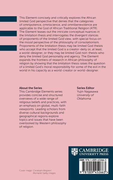 This Element concisely and critically explores the African limited God perspective that denies that the categories of omnipotence, omniscience, and omnibenevolence are applicable to the God of African Traditional Religion (ATR).