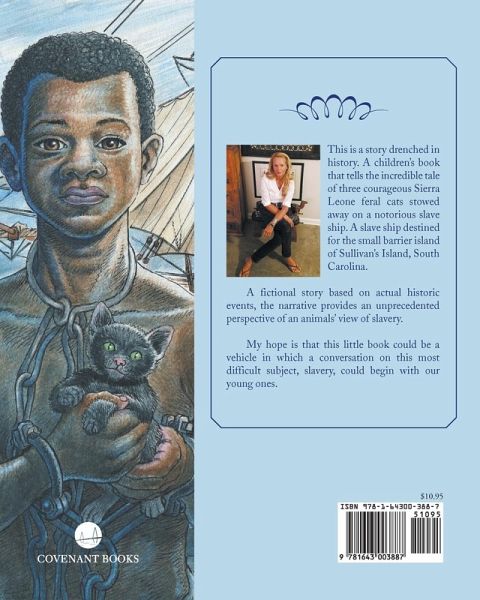 This is a story drenched in history. A children's book that tells the incredible tale of three courageous Sierra Leone feral cats stowed away on a notorious slave ship. A slave ship destined for the small barrier island of Sullivan's Island, South Carolina. A fictional story based on actual historic events, the narrative provides an unprecedented perspective of an animals' view of slavery. My hope is that this little book could be a vehicle in which a conversation on this most difficult subject, slavery, could begin with our young ones.