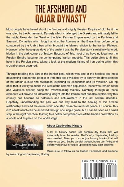 If you want to discover the captivating history of the Afsharid and Qajar Dynasty, then keep reading... Most people have heard about the famous and mighty Persian Empire of old, be it the one ruled by the Achaemenid Dynasty which challenged the Greeks and ultimately fell to the might Alexander the Great or the later Persian Empire ruled by the Parthian and Sassanid Dynasties which fought against the Romans an the Byzantines before being conquered by the Arab tribes which brought the Islamic religion to the Iranian Plateau. However, after those glory days of the ancient era, the Persian story is relatively ignored, hidden in the dark corners of history. Because of this, most of us have no idea how the Persian Empire became the contemporary Iranian republic. This guide aims to fill this hole in the Persian story, taking a look at the modern history of Iran during which this crucial change occurred. Through retelling this part of the Iranian past, which was one of the hardest and most devastating eras for the people of Iran, this book will also try to portray the development of the Iranian culture and civilization, exploring its uniqueness and its evolution. On top of all that, it will try to depict the lives of the common population, those who remain silent and voiceless despite being the overwhelming majority. Combing through all these elements will provide an interesting insight into the Iranian past but also explain why this country has become so notorious and anti-Western in the last several decades. Hopefully, understanding the past will one day lead to the healing of this broken relationship and lead the entire world one step closer to universal peace. Of course, this isn't a task which can be achieved through one single guide, but it can be seen as a small step in the right direction, leading to a better comprehension of the Iranian civilization as a whole and its place on the world stage. In The Afsharid and Qajar Dynasty: A Captivating Guide to Two Iranian Dynasties Who Ruled Persia from 1736 to 1925, you will discover topics such as Geography and Ancient History of Persia Modern History of Persia and the Afsharid Dynasty The Persian Empire under the Qajar Dynasty Modern Persian Society Culture of Modern Persia And much, much more! So if you want to learn more about the history of the Afsharid and Qajar Dynasty, scroll up and click the "add to cart" button!