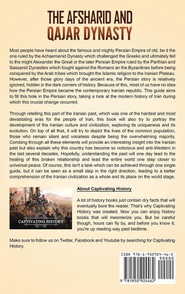 If you want to discover the captivating history of the Afsharid and Qajar Dynasty, then keep reading... Most people have heard about the famous and mighty Persian Empire of old, be it the one ruled by the Achaemenid Dynasty which challenged the Greeks and ultimately fell to the might Alexander the Great or the later Persian Empire ruled by the Parthian and Sassanid Dynasties which fought against the Romans an the Byzantines before being conquered by the Arab tribes which brought the Islamic religion to the Iranian Plateau. However, after those glory days of the ancient era, the Persian story is relatively ignored, hidden in the dark corners of history. Because of this, most of us have no idea how the Persian Empire became the contemporary Iranian republic. This guide aims to fill this hole in the Persian story, taking a look at the modern history of Iran during which this crucial change occurred. Through retelling this part of the Iranian past, which was one of the hardest and most devastating eras for the people of Iran, this book will also try to portray the development of the Iranian culture and civilization, exploring its uniqueness and its evolution. On top of all that, it will try to depict the lives of the common population, those who remain silent and voiceless despite being the overwhelming majority. Combing through all these elements will provide an interesting insight into the Iranian past but also explain why this country has become so notorious and anti-Western in the last several decades. Hopefully, understanding the past will one day lead to the healing of this broken relationship and lead the entire world one step closer to universal peace. Of course, this isn't a task which can be achieved through one single guide, but it can be seen as a small step in the right direction, leading to a better comprehension of the Iranian civilization as a whole and its place on the world stage. In The Afsharid and Qajar Dynasty: A Captivating Guide to Two Iranian Dynasties Who Ruled Persia from 1736 to 1925, you will discover topics such as Geography and Ancient History of Persia Modern History of Persia and the Afsharid Dynasty The Persian Empire under the Qajar Dynasty Modern Persian Society Culture of Modern Persia And much, much more! So if you want to learn more about the history of the Afsharid and Qajar Dynasty, scroll up and click the "add to cart" button!