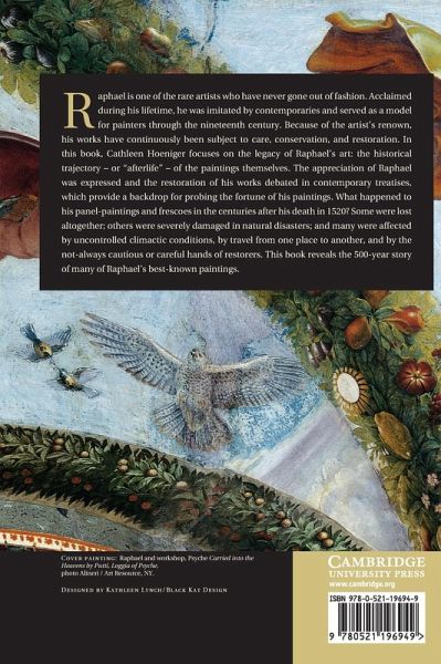 Raphael is one of the rare artists who have never gone out of fashion. Acclaimed during his lifetime, he was imitated by contemporaries and served as a model for painters through the nineteenth century. His works have continuously been subject to care, conservation, and restoration, and here Hoeniger focuses on the legacy of Raphael's art: the historical trajectory - or 'afterlife' - of the paintings themselves. Appreciation of Raphael was expressed and the restoration of his works debated in contemporary treatises, providing a backdrop for probing the fortune of his paintings. What happened to his panel-paintings and frescoes in the centuries after his death in 1520? Some were lost altogether; others damaged in natural disasters; and many were affected by uncontrolled climatic conditions, by travel from one place to another, and by the not always careful hands of restorers. This book reveals the five-hundred-year story of many of Raphael's most well-known paintings.