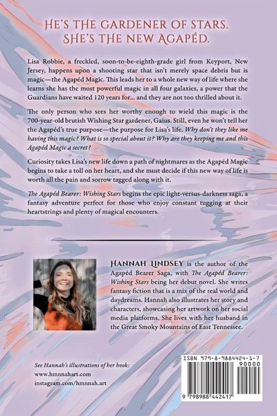 He's the Star Gardener. She's the new Agapéd. Lisa Robbie, a freckled, soon-to-be-eighth-grade girl from Keyport, New Jersey, happens upon a shooting star that isn't merely space debris but is magic-the Agapéd Magic. This leads her to a whole new way of life where she learns she has the most powerful magic in all four galaxies, a power that the Guardians have waited 120 years for... and they are not too thrilled about it. The only person who sees her worthy enough to wield this magic is the 700-year-old brutish Wishing Star gardener, Gaius. Still, even he won't tell her the Agapéd's true purpose-the purpose for Lisa's life. Why don't they like me having this magic? What is so special about it? Why are they keeping me and this Agapéd Magic a secret? Curiosity takes Lisa down a path of nightmares as the Agapéd Magic begins to take a toll on her heart, and she must decide if this new way of life is worth all the pain and sorrow tagged along with it. . . . The Agapéd Bearer: Wishing Stars begins the epic light-versus-darkness saga, a fantasy adventure perfect for those who enjoy constant tugging at their heartstrings and plenty of magical encounters. This edition of the book does not contain illustrations. Only the limited editions contain the author's colored illustrations. 2025 IngramSpark® Editorial Selection - Young Adult