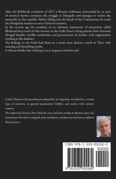 After the Bolshevik revolution of 1917 a Russian nobleman surrounded by an aura of mystical warrior continues the struggle in Mongolia and manages to restore the monarchy in that republic. Before falling into the hands of the Communists, he sends the Mongolian treasure to save it from his enemies. In the current age the members of an informal community of researchers called Bluthund keep track of that treasure in the Gobi Desert facing attacks from fearsome Mongol bandits, terrible sandstorms and persecutions of another rival organization working in the shadows. The findings in the Gobi lead them to a much more decisive search in Tibet with amazing and disturbing results. A vibrant thriller that will keep you in suspense until the end.