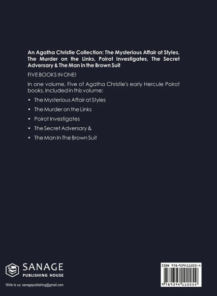 An Agatha Christie Collection: The Mysterious Affair at Styles, The Murder on the Links, Poirot Investigates, The Secret Adversary & The Man in the Brown Suit FIVE BOOKS IN ONE! In one volume, Five of Agatha Christie's early Hercule Poirot books. Included in this volume: The Mysterious Affair at Styles The Murder on the Links Poirot Investigates The Secret Adversary & The Man In The Brown Suit