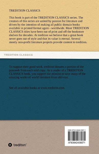 This book is part of the TREDITION CLASSICS series. The creators of this series are united by passion for literature and driven by the intention of making all public domain books available in printed format again - worldwide. At tredition we believe that a great book never goes out of style. Several mostly non-profit literature projects provide content to tredition. To support their good work, tredition donates a portion of the proceeds from each sold copy. As a reader of a TREDITION CLASSICS book, you support our mission to save many of the amazing works of world literature from oblivion.