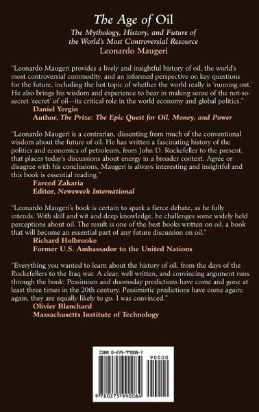 Oil is the most vital resource of our time. Because it is so important, misperceptions about the black gold abound. Leonardo Maugeri clears the cobwebs by describing the colorful history of oil, and explaining the fundamentals of oil production. He delivers a unique, fascinating, and controversial perspective on the industry-as only an insider could. The history of the oil market has been marked, since its inception, by a succession of booms and busts, each one leading to a similar psychological climax and flawed political decisions. In a single generation, we've experienced the energy crisis of 1973; the dramatic oil countershock of 1986; the oil collapse of 1998-99 that gave rise to the idea of oil as just another commodity; and the sharp price increases following hurricane Katrina's devastation in the Gulf of Mexico. Today, we are experiencing a global oil boom that, paradoxically, seems to herald a gloomy era of scarcity exacerbated by growing consumption and the threat from Islamic terrorism in the oil-rich Middle East. Maugeri argues that the pessimists are wrong. In the second part of his book, he debunks the main myths surrounding oil in our times, addressing whether we are indeed running out of oil, and the real impact of Islamic radicalism on oil-rich regions. By translating many of the technical concepts of oil productions into terms the average reader can easily grasp, Maugeri answers our questions. Ultimately, he concludes that the wolf is not at the door. We are facing neither a problem of oil scarcity, nor an upcoming oil blackmail by forces hostile to the West. Only bad political decisions driven by a distorted view of current problems (and who is to blame for them) can doom us to a gloomy oil future.