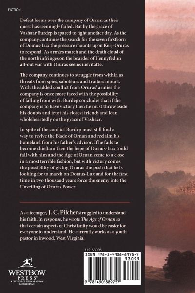 Defeat looms over the company of Ornan as their quest has seemingly failed. But by the grace of Vashaar Burdep is spared to fight another day. As the company continues the search for the seven firstborn of Domus-Lux the pressure mounts upon Kerj-Oruras to respond. As armies march and the death cloud of the north infringes on the boarder of Hennyfed an all-out war with Oruras seems inevitable. The company continues to struggle from within as threats from spies, saboteurs and traitors mount. With the added conflict from Oruras’ armies the company is once more faced with the possibility of falling from with. Burdep concludes that if the company is to have victory then he must throw aside his doubts and trust his closest friends and lean wholeheartedly on the grace of Vashaar. In spite of the conflict Burdep must still find a way to revive the Blade of Ornan and reclaim his homeland from his father’s advisor. If he fails to become chieftain then the hope of Domus-Lux could fail with him and the Age of Ornan come to a close in a most terrible fashion, but with victory comes the possibility of giving Oruras the push that he is looking for to march on Domus-Lux and for the first time in two thousand years force the enemy into the Unveiling of Oruras Power.
