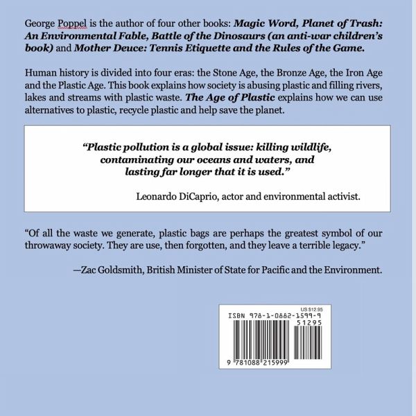 Humans have lived through four ages: Stone Age, Bronze Age, Iron Age and now the Plastic Age. Plastic is being abused. Plastic packaging is wasteful and harmful to the environment. The book describes these ages and explain human development. The book warns that we are harming the environment and must stop using and wasting plastic.