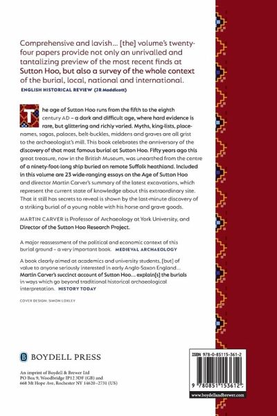 The Age of Sutton Hoo runs from the fifth to the eighth century AD - the age which separates the fall of the Roman Empire from the emergence of the nation-states that have endured down to the present day. This is a dark and difficult age, where hard evidence is rare, but glittering and richly varied: 'myths, king-lists, placenames, sagas, settlements, runic inscriptions, palaces, belt-buckles, post-holes, middens and graves, ' says the editor, 'are all grist to our mill.'. This volume celebrates the fiftieth anniversary of the discovery of that most famous burial of the early middle ages: the great treasure now in the British Museum, unearthed from the centre of a ninety-foot-long ship buried in the sand beneath a mound on remote Suffolk heathland at Sutton Hoo. It also marks the end of the major campaign of excavations carried out there over the past decade, which involved the widest possible range of disciplines. The scholars whose work is gathered here represent, together with Martin Carver's concluding chapter summarising the results of the latest excavations, the current state of knowledge about this extraordinary site; that it still has secrets to reveal is shown by the last-minute discovery of a striking burial of a young noble with his horse and grave goods.