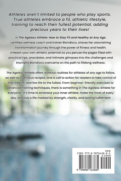 Athletes aren't limited to people who play sports. True athletes embrace a fit, athletic lifestyle, training to reach their fullest potential, adding precious years to their lives! In The Ageless Athlete: How to Stay Fit and Healthy at Any Age, certified wellness coach and trainer Blondlocs, shares her astonishing transformation journey through the power of fitness and health. Unleash your own athletic potential as you peruse the pages filled with practical tips, anecdotes, and intimate glimpses into the challenges and triumphs Blondlocs overcame on the path to lifelong wellness. The Ageless Athlete offers workout routines for athletes of any age to follow, as well as nutritious recipes, and a call to action for readers to take control of their health, and live life to the fullest. From beginner-friendly exercises to advanced training techniques, there is something in The Ageless Athlete for everyone. It's time to embrace your inner athlete, make the most of every day, and live a life marked by strength, vitality, and lasting fulfillment!