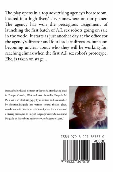 The play opens in a top advertising agency's boardroom, located in a high flyers' city somewhere on our planet. The agency has won the prestigious assignment of launching the first batch of A.I. sex robots going on sale in the world. It starts as just another day at the office for the agency's director and four lead art directors, but soon becoming unclear about who they will be working for, reaching climax when the first A.I. sex robot's prototype, Ebe, is taken on stage...