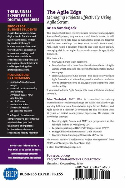 This concise book is an effective source for understanding Agile Scrum development; why we use it and how it works. It will explain how work gets done in manageable iterations (sprints) and the team meetings that keep work on track (ceremonies). Also, since risk is a constant threat to any team-based project, managing risk in an Agile Scrum environment is specii cally discussed. This book is for: ¿ New Agile Scrum team members. ¿ Team leaders - this book describes the foundation of Agile Scrum, which can save time getting team members on the same page. ¿ Trainer/Educator of Agile Scrum - this book clearly defines Agile Scrum in a structured way so that students can learn how to effectively serve on an Agile team to improve their marketability. If you need to know Agile Scrum, this book will show you how to own it.