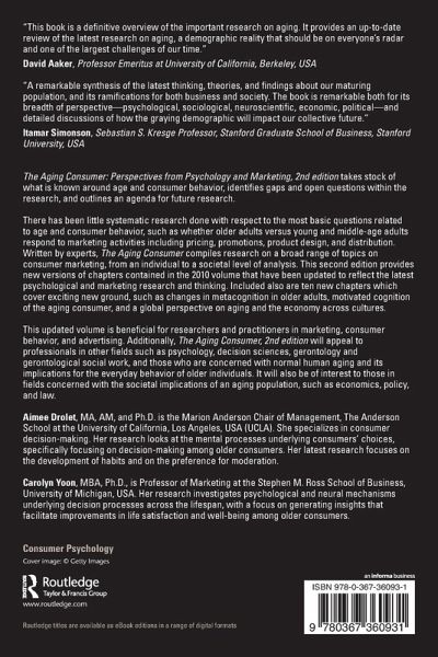 The Aging Consumer: Perspectives from Psychology and Marketing, 2nd edition takes stock of what is known around age and consumer behavior, identifies gaps and open questions within the research, and outlines an agenda for future research.