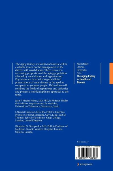 "Whether in health or in disease, age affects many parts of the body - including the kidneys - and this book, The Aging Kidney in Health and Disease, delves deeply into these matters in a well-organized and readable fashion. It gives readers an overview of the physiology and pathology of the kidney during the aging process. ... will serve as a multidisciplinary guide for general physicians, internists, nephrologists, and geriatricians who want to improve their knowledge of geriatric nephrology." (Jane F. Reckelhoff and Julio C. Sartori-Valinotti, The New England Journal of Medicine, July, 2008)