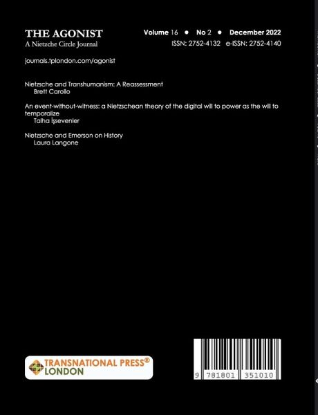 Nietzsche and Transhumanism: A Reassessment Brett Carollo 67 An event event-without -witness: a Nietzschean theory of the digital will to power as the will to temporalize Talha ¿¿sevenler 83 Nietzsche and Emerson on History Laura Langone 95