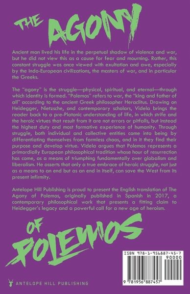 Ancient man lived his life in the perpetual shadow of violence and war, but he did not view this as a cause for fear and mourning. Rather, this constant struggle was once viewed with exultation and awe, especially by the Indo-European civilizations, the masters of war, and in particular the Greeks. The "agony" is the struggle-physical, spiritual, and eternal-through which identity is formed. "Polemos" refers to war, the "king and father of all" according to the ancient Greek philosopher Heraclitus. Drawing on Heidegger, Nietzsche, and contemporary scholars, Videla hearkens the reader back to a pre-Platonic understanding of life, in which strife and the heroic virtues that result from it are not errors or pitfalls, but instead the highest duty and most formative experience of humanity. Through struggle, both individual and collective entities come into being by differentiating themselves from formless chaos, and in it they find their purpose and develop virtue. Videla argues that Polemos represents a primordially European philosophical tradition whose hour of resurrection has come, as a means of triumphing over the miasma of our time. Antelope Hill Publishing is proud to present the English translation of The Agony of Polemos, originally published in Spanish in 2017, a contemporary philosophical work that presents a fitting claim to Heidegger's legacy and a powerful call for a new age of heroism.