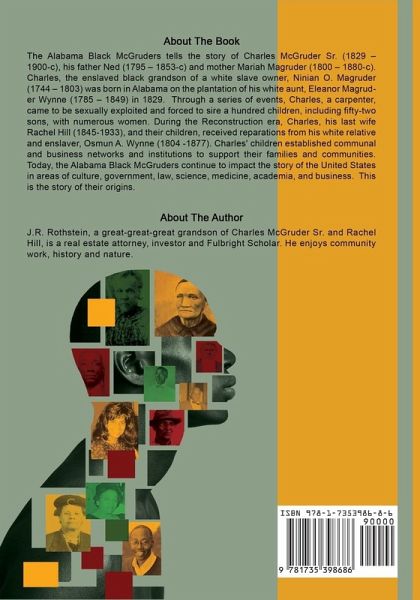 The Alabama Black McGruders tells the story of Charles McGruder Sr. (1829 - 1900-c), his father Ned (1795 - 1853-c) and mother Mariah Magruder (1800 - 1880-c). Charles, the enslaved black grandson of a white slave owner, Ninian O. Magruder (1744 - 1803) was born in Alabama on the plantation of his white aunt, Eleanor Magruder Wynne (1785 - 1849) in 1829. Through a series of events, Charles, a carpenter, came to be sexually exploited and forced to sire a hundred children, including fifty-two sons, with numerous women. During the Reconstruction era, Charles, his last wife Rachel Hill (1845-1933), and their children received reparations from his white relative and enslaver, Osmun A. Wynne (1804 -1877). Charles' children established communal and business networks and institutions to support their families and communities. Today, the Alabama Black McGruders continue to impact the story of the United States in areas of culture, government, law, science, medicine, academia, and business. This is the story of their origins.