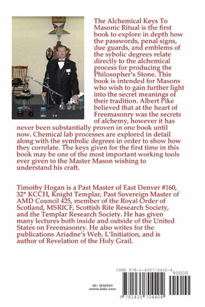 This is the first book which establishes a direct link between the rituals of Freemasonry and the practice of both chemical and spiritual alchemy. Albert Pike understood that the symbolic degrees of Freemasonry contained alchemical secrets, but he never put the whole pattern together and showed how. This book shows these connections for the first time. This book is a must for any Freemason who wants to understand the secret meanings behind the Symbolic "Blue Lodge" ritual. Tim Hogan is a PM, 32*KCCH, KT, FRC, PSM-AMD, and Knight RC of the Royal Order of Scotland. He lectures extensively both inside and outside of the United States on Freemasonry.
