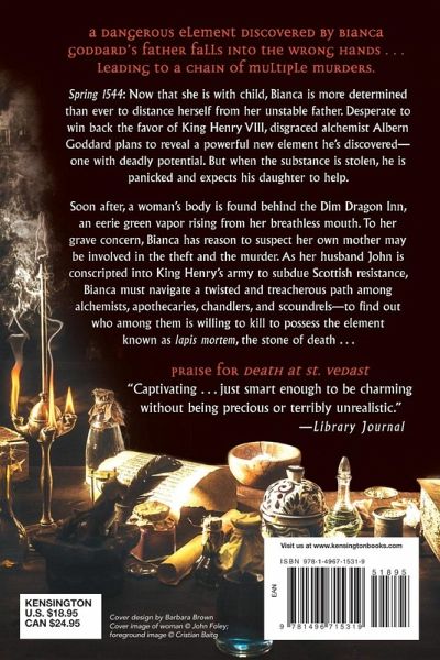 A dangerous element discovered by Bianca Goddard's father falls into the wrong hands . . . leading to a chain of multiple murders. Spring 1544: Now that she is with child, Bianca is more determined than ever to distance herself from her unstable father. Desperate to win back the favor of King Henry VIII, disgraced alchemist Albern Goddard plans to reveal a powerful new element he's discovered-one with deadly potential. But when the substance is stolen, he is panicked and expects his daughter to help. Soon after, a woman's body is found behind the Dim Dragon Inn, an eerie green vapor rising from her breathless mouth. To her grave concern, Bianca has reason to suspect her own mother may be involved in the theft and the murder. As her husband John is conscripted into King Henry's army to subdue Scottish resistance, Bianca must navigate a twisted and treacherous path among alchemists, apothecaries, chandlers, and scoundrels-to find out who among them is willing to kill to possess the element known as lapis mortem, the stone of death . . . Praise for Death at St. Vedast "Full of period details, Lawrence's latest series outing captures Tudor London in all its colorful splendor. A solid choice for devotees of Karen Harper's Elizabethan mysteries." -Library Journal