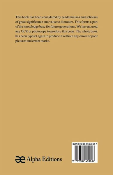 This book has been considered by academicians and scholars of great significance and value to literature. This forms a part of the knowledge base for future generations. We have represented this book in the same form as it was first published. Hence any marks seen are left intentionally to preserve its true nature.