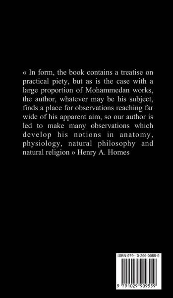 In form, the book contains a treatise on practical piety, but as is the case with a large proportion of Mohammedan works, the author, whatever may be his subject, finds a place for observations reaching far wide of his apparent aim, so our author is led to make many observations which develop his notions in anatomy, physiology, natural philosophy and natural religion Henry A. Homes