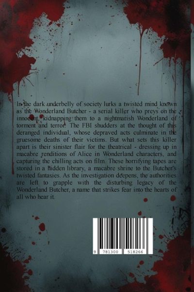 In the dark underbelly of society lurks a twisted mind known as the Wonderland Butcher - a serial killer who preys on the innocent, kidnapping them to a nightmarish Wonderland of torment and terror. The FBI shudders at the thought of this deranged individual, whose depraved acts culminate in the gruesome deaths of their victims. But what sets this killer apart is their sinister flair for the theatrical - dressing up in macabre renditions of Alice in Wonderland characters, and capturing the chilling acts on film. These horrifying tapes are stored in a hidden library, a macabre shrine to the Butcher's twisted fantasies. As the investigation deepens, the authorities are left to grapple with the disturbing legacy of the Wonderland Butcher, a name that strikes fear into the hearts of all who hear it.
