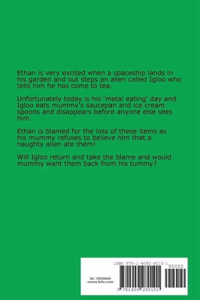 Ethan is delighted when an alien comes to tea, but forgets to mention it is his 'metal eating' day. He eats mummy's saucepan and ice cream spoons and disappears leaving Ethan to get the blame for the missing items! 88 pages, black and white illustrations inside. Ages 6 - 8 years