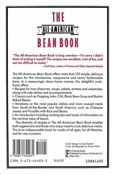 The All-American Bean Book offers more than 125 simple, delicious recipes for the wholesome, inexpensive and newly fashionable bean. The diversity of recipes in the The All-American Bean Book enables both vegetarians and those who enjoy meat to cook delicious meals. This is an indispensable book for cooks of all ages, for all lifestyles and for any occasion.