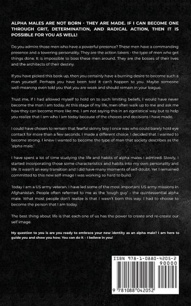 Have you ever felt you're not living up to your potential and that you're not living the life you want? It's like a small voice telling you what you should be doing in your life, but you don't know how to get where you want to be. "ALPHA MALES ARE NOT BORN ¿ THEY ARE MADE. IF I CAN BECOME ONE THROUGH GRIT, DETERMINATION, AND RADICAL ACTION, THEN IT IS POSSIBLE FOR YOU AS WELL!" Do you admire those men who have a powerful presence? These men have a commanding Presence and a towering personality. They are the action takers the type of men who get things done. It is impossible to boss these men around. They are the bosses of their lives and the architects of their destiny. Do you wish to advance and excel in all facets of your life? If so, the following is what this book explains: - -The significance of maximizing your relationship, social life, and situations. - How to transform your mental state from beta to alpha for a better life. - Give you practice tests at the end of each chapter to help you achieve your goal of becoming the man you are meant to be. 'Nothing is preventing you from adopting the mindset of an alpha and becoming one yourself.' This book will empower you to develop into a true alpha male who pursues greatness and leads a prosperous, fulfilling life.