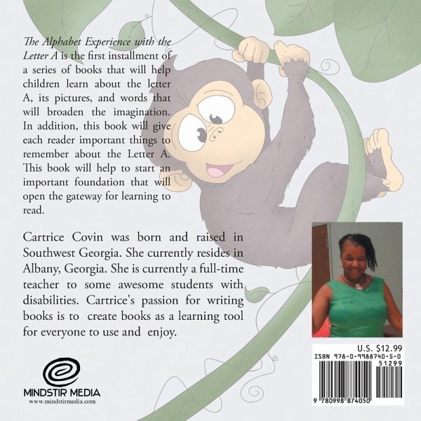 The Alphabet Experience with the Letter A is the first installment of a series of books that will help children learn about the letter A, its pictures, and words that will broaden the imagination. In addition, this book will give each reader important things to remember about the Letter A. This book will help to start an important foundation that will open the gateway for learning to read.