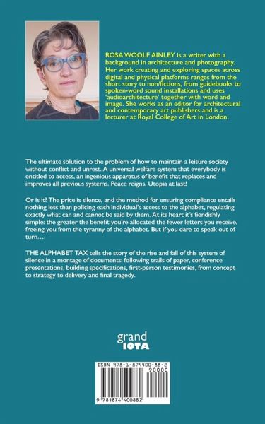 The ultimate solution to the problem of how to maintain a leisure society without conflict and unrest. A universal welfare system that everybody is entitled to access, an ingenious apparatus of benefit that replaces and improves all previous systems. Peace reigns. Utopia at last! Or is it? The price is silence, and the method for ensuring compliance entails nothing less than policing each individual's access to the alphabet, regulating exactly what can and cannot be said by them. At its heart it's fiendishly simple: the greater the benefit you're allocated the fewer letters you receive, freeing you from the tyranny of the alphabet. But if you dare to speak out of turn.... THE ALPHABET TAX tells the story of the rise and fall of this system of silence in a montage of documents: following trails of paper, conference presentations, building specifications, first-person testimonies, from concept to strategy to delivery and final tragedy.
