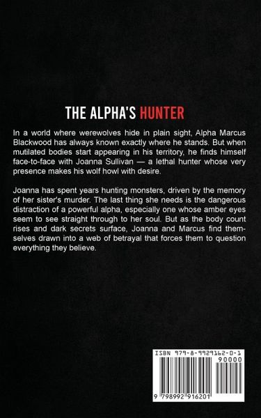 In a world where werewolves hide in plain sight, Alpha Marcus Blackwood has always known exactly where he stands. But when mutilated bodies start appearing in his territory, he finds himself face-to-face with Joanna Sullivan - a lethal werewolf hunter whose very presence makes his wolf howl with desire. Joanna has spent years hunting monsters, driven by the memory of her sister's murder. The last thing she needs is the dangerous distraction of a powerful alpha, especially one whose amber eyes seem to see straight through to her soul. But as the body count rises and dark secrets surface, Joanna and Marcus find themselves drawn into a web of betrayal that forces them to question everything they believe. When whispers of revolution threaten to expose the supernatural world, Marcus and Joanna must decide if the burning attraction between them is worth crossing lines of duty. As hunters and werewolves choose sides, it becomes clear they are both struggling with the same question: ...What if they're not all monsters?