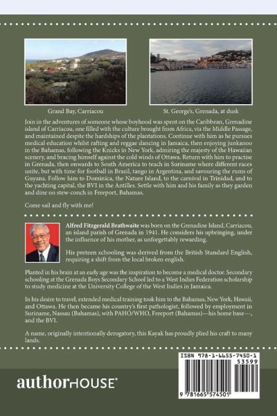 Alfred Fitzgerald Brathwaite was born on the Grenadine Island, Carriacou, an island parish of Grenada in 1941. He considers his upbringing, under the influence of his mother, as unforgettably rewarding. His preteen schooling was derived from the British Standard English, requiring a shift from the local broken english. Planted in his brain at an early age was the inspiration to become a medical doctor. Secondary schooling at the Grenada Boys Secondary School led to a West Indies Federation scholarship to study medicine at the University College of the West Indies in Jamaica. In his desire to travel, extended medical training took him to the Bahamas, New York, Hawaii, and Ottawa. He then became his country's first pathologist, followed by employment in Suriname, Nassau (Bahamas), with PAHO/WHO, Freeport (Bahamas)-his home base---, and the BVI. A name, originally intentionally derogatory, this Kayak has proudly plied his craft to many lands.