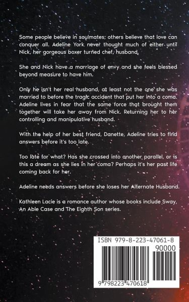 THE ALTERNATE HUSBAND is a gripping novel that will keep you on the edge of your seat. Adeline's life is turned upside down when she wakes up from a coma to find that her husband is not the same man she was married to before her accident. Nick, her alternate husband, is kind, caring, and everything she needs. As she adjusts to her new life and finds herself falling hard and fast for Nick, she lives with the constant fear of losing him. Adeline must find the answers before she is taken back to her old life. A life with her husband, Robert, who is a controlling manipulative husband. This novel explores the complexities of love, loss, and the power of choice. This emotionally charged story will keep you on the edge of your seat as you witness the power of true love and the impact of the unexpected. Get ready for a journey filled with passion, heartbreak, and, ultimately, hope.