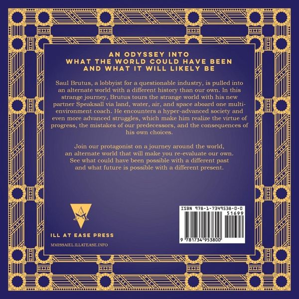 AN ODYSSEY INTO WHAT THE WORLD COULD HAVE BEEN AND WHAT IT WILL LIKELY BE Saul Brutus, a lobbyist for a questionable industry, is pulled into an alternate world with a different history than our own. In this strange journey, Brutus tours the strange world with his new partner Speaksall via land, water, air, and space aboard one multi- environment coach. He encounters a hyper-advanced society and even more advanced struggles, which make him realize the virtue of progress, the mistakes of our predecessors, and the consequences of his own choices. Join our protagonist on a journey around the world, an alternate world that will make you re-evaluate our own. See what could have been possible with a different past and what future is possible with a different present.